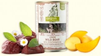 isegrim® Junior Wild Boar се състои от висококачествен животински протеин от два източника:прясна дива свиня и карантии като сърце, черен дроб и бели дробове.