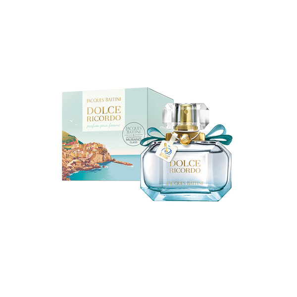 JACQUES BATTINI DOLCE RICARDO + ГРИВНА MURANO GLASS Нежен плодово-флорален аромат за жени.DOLCE RICARDO комбинира в себе си връхни нотки на бергамонт,лимон , праскова и ябълка деликатно преплитащи се със средни нотки на жасмин , виолетка , иланг-иланг и момина сълза . Базовите нотки се състоят от сандалово дърво, ванилия , мускус и амбър. Аромата е в комбинация с гривна с кристал MURANO GLASS.
