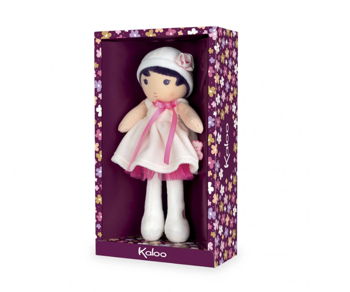 Кукла Перла е нежност и елегантност. Най-нежната в семейството, тя е като принцеса, облечена в пола от тюл и красиво цвете на главата. С нежната си усмивка и мил поглед, тя винаги ще бъде близо до вашето мъниче, за да го утеши, когато е тъжно. Емблематичното мече Kaloo е бродирано на краката й, което я прави още по-уникална. Напишете името на дъщеря си на дългата панделка на гърба на куклата, за да я направите лесно разпознаваема. Големият й размер е идеален за големи истински прегръдки. С височина 25 см, може да се използва от раждането, може да се пере в пералня, в красива отворена кутия (16 x 7.5 x 29 см).