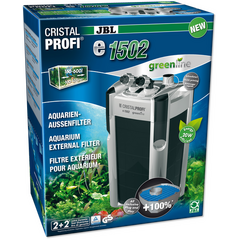 Лесен за инсталиране:Външният филтър е напълно оборудван и готов за свързване. Вграденото устройство за бързо стартиране прави филтъра лесен за инсталиране без необходимост от ръчно зареждане. Филтърната среда е включена в съдържанието.Лесно почистване:Смяната на лесния за достигане предфилтър означава, че рядко се налага да почиствате останалата част от филтъра. Големият обем на филтъра осигурява висока ефективност на биологично филтриране, включваща няколко филтърни слоя. Биофилтърните топки вътре са с различни диаметри. Това насърчава ефекта на самопочистване.Енергийно ефективен и безопасен:Със само 20 W консумация на енергия CristalProfi e 1502 предлага значителни икономии на енергия. При ефективна, продължителна циркулация на водата устройството консумира 27% по-малко енергия от сравними предишни модели. Патентованият блок за свързване на маркуча с предпазен клапан предотвратява изтичането на вода при разкачване на филтъра. JBL CristalProfi е тестван от TÜV.Ново в сравнение с модела JBL CristalProfi e 1501 е напълно новата и ефективно проектирана горна филтърна кошница: тя вече съдържа двойно по-голяма филтърна подложка от една част като предфилтър вместо 2 малки външно подредени предфилтърни подложки във филтърната кошница .