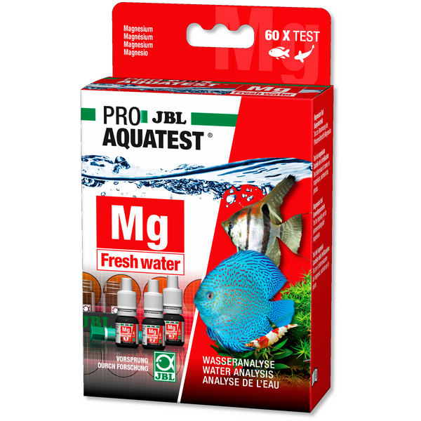 Защо да тествате?Заедно с калция, магнезият създава общата твърдост. Магнезият, подобно на калия, е макроелемент, който е необходим за здравия и енергичен растеж на растенията. Водата от чешмата много често съдържа твърде ниски количества магнезий за водните растения, което бързо причинява симптоми на дефицит. Дори ако наторявате аквариумната вода редовно, все още може да има твърде малко налични количества магнезий и растежът на растенията ще спре.Препоръчителни стойности на магнезий:Сладководен аквариум (общ аквариум): 5-10 mg/lАквариум при езерото Малави/езерото Танганайка: 5-10 mg/lАквариум за растения с малко риби (aquascaping): 5-10 mg/lАквариум с морска вода: този тестът не е подходящ, тъй като съдържанието на магнезий в морската вода е 1200-1600 mg/l. Затова за морска вода използвайте специалния тест за магнезий/калций JBL.