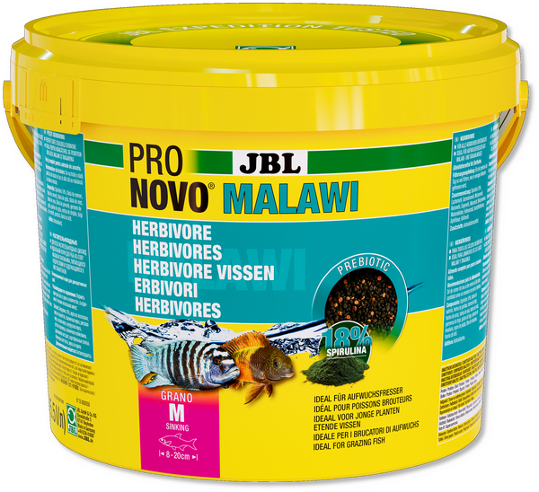 Предимства на храните JBL:използване на чист рибен протеин без евтино рибно брашно.Оптимално съотношение протеин/мазнина.Основно протеини от водни животни.Намаляване на растежа на водорасли и оптимален растеж на рибите благодарение на адаптираното съдържание на фосфати.Пребиотик: пребиотиците са „субстрати, които се използват селективно от микроорганизмите гостоприемници и осигуряват ползи за здравето“. Учените са единодушни, че те насърчават храносмилането и по този начин здравето. В случая с нашата риба има още един съществен аспект: при по-добро храносмилане се отделя по-малко и по този начин водата е по-малко замърсена, причинявайки по-малко проблеми с водораслите и поддържайки водата по-чиста.Тъй като по-голямата част от цихлидите, култивирани от езерото Танганайка, са хищници, ние нарекохме храната за хищни видове PRONOVO TANGANYIKA. Тъй като повечето от видовете, култивирани от езерото Малави, се хранят с растеж, JBL нарече тази храна PRONOVO MALAWI.