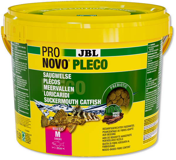 Някои видове сомове няма да излязат, когато светлината свети. Ако след това дадете храна на таблетки, те ще се разпаднат и ще бъдат изядени от другите риби, ако харесват „зелени таблетки храна“. В този случай е препоръчително да захранвате JBL PRONOVO PLECO СЛЕД изключване на светлината. Вафлите (чипове, които са по-тънки от хранителните таблетки) не се разтварят толкова бързо и запазват консистенцията си, докато сомът е активен, така че сомът-смукач трябва да стърже енергично (важно за зъбите - без шега!).Какво правите, ако отглеждате различни дънни обитатели в аквариум?Рибите също имат усещане за вкус и отказват храна, която не харесват. Ние не отглеждаме НИКАКВИ дънни видове, които биха имали проблеми, ако ядат от хранителна таблетка, предназначена за друг вид (напр. щипки). Така че хранете и двата вида таблетки (напр. JBL PRONOVO PLECO за растителноядни сомчета и JBL PRONOVO TAB за месоядни или всеядни сомове) едновременно. Дори е полезно за рибите, тъй като им се предлага по-голямо разнообразие и въпреки това всяка група риби получава подходящо за вида си хранене.