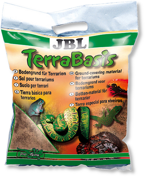 По време на настройката е важно да имате правилния субстрат, растения, циркулация на въздуха, осветление и температура в терариума.Terrabasis – подходящ за:индийски питон/кралски питон, царевична змия и западна змия плъх, кралска змия, водна агама, планински рогат дракон, анолис, зелена игуана, жартиерна змия, костенурка, дървесна жаба, крастава жаба, жаба стрела, огнекоремна жаба , космат мигаломорф, императорски скорпион, дневен гекон, хамелеон, малки костенуркиЛесен за използване:При необходимост покрийте дъното на терариума с подходящ слой JBL Terra Basis. Живите растения трябва да бъдат поставени в саксии, за да бъдат снабдени с налични в търговската мрежа торове.