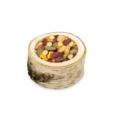 Вкусните банани, ананас, кайсии и червено цвекло осигуряват естествени витамини, минерали и фибри. Естествената дървена купа може да се гризе и яде обилно. Това насърчава важното изтриване на зъбите и противодейства на скуката.