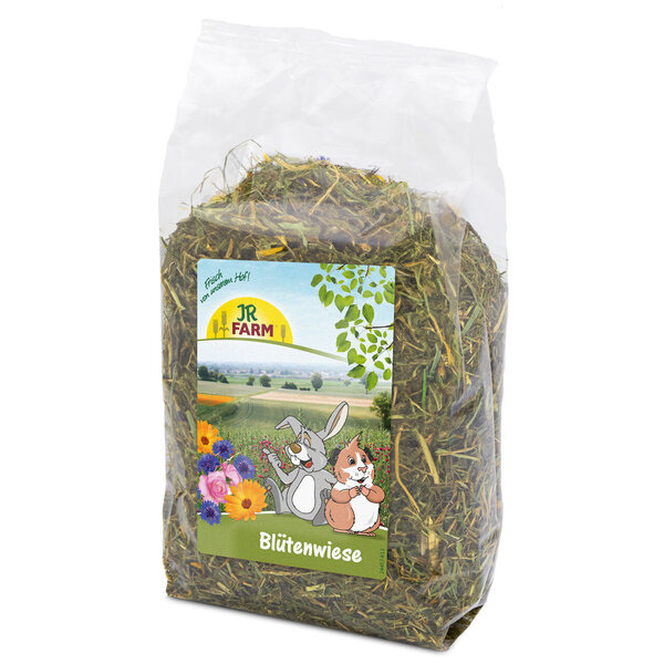 Сеното служи като богата на хранителни вещества и подходяща за вида хранителна основа за домашни любимци и насърчава естественото изтриване на растящите през целия живот зъби при гризане. Съдържащите се сурови фибри подхранват важни чревни бактерии и по този начин укрепват чревната флора. Обогатена с успокояващи кожата цветове от невен и ароматни метличина и розови листенца, цветната цветна поляна е чисто и естествено удоволствие!