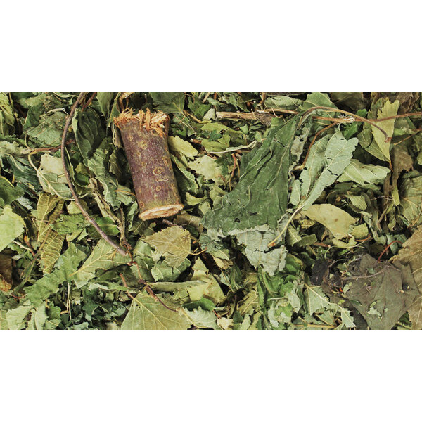 Високото съдържание на сурови фибри насърчава храносмилането, както и физиологичното изтриване на зъбите, които растат през целия живот. Обогатена с хрупкаво лешниково дърво, тази горска смес с дървесен аромат и ниско съдържание на калории е истинско удоволствие за небцето. Ценните брезови и лешникови листа, както и корени от коприва подпомагат пречистването и по този начин допринасят за общата жизненост на животните.