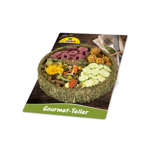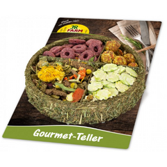 Менюто е сервирано! Пъстра селекция от ароматни и подходящи за вида лакомства създава неустоимо меню на гурме чинията за малки животни и зайци джуджета.