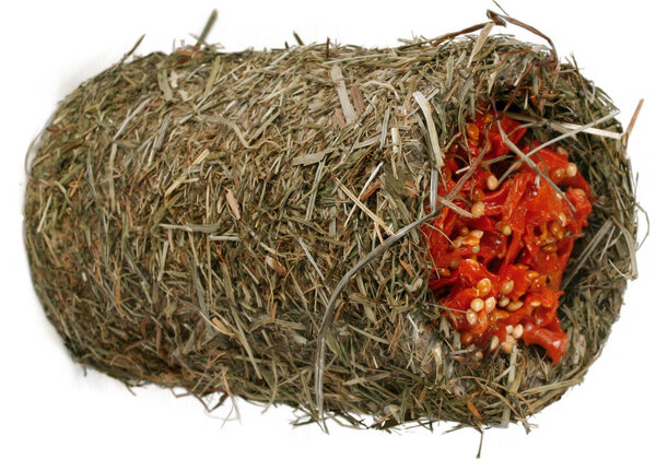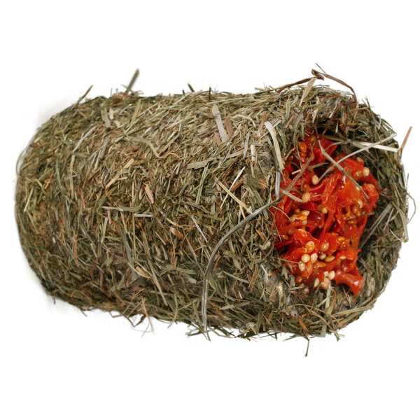 Намазан е с ароматно, богато на сурови фибри планинско ливадно сено и пълен с хрупкави моркови.