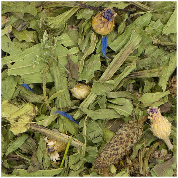 Здравословен груб фураж за ежедневна наслада. Нежно изсушен, отхрачващ рибрит е благодат за дихателните пътища на малки животни и зайци джуджета.