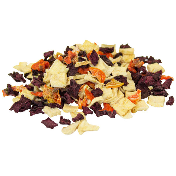 Зеленчуковият микс осигурява на дребните животни и зайчетата джуджета важен бета-каротин, желязо и пребиотичен инулин и по този начин подпомага храносмилателния тракт и кръвообразуването. В същото време, интензивното гризане на всички компоненти насърчава естественото изтриване на зъбите. Целият морков е 100% натурален и може да се консумира цял.