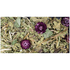 Вимателно изсушено вкусно глухарче,комбинирано с ароматен градински чай - страхотно лакомство за всеки гризач!Специалните съставки в градинския чай имат позитивно влияние върху дихателните пътища на Вашето животно,докато ароматните цветя хелихризиум представляват вкусно и изкусително лакомство.Идеалната допълваща храна на беззърнена диета.