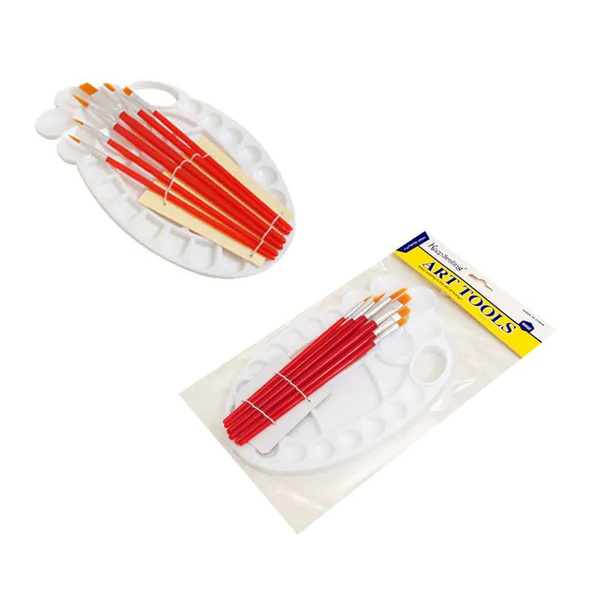 К-кт палитра с 6 броя четки за рисуване /12 комплекта в стек/.