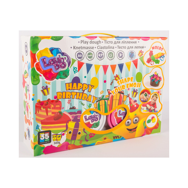 к-т пластелин честит рожден ден 560 гр 20 цвята с преса форми и инструкция 30х22х7 см с дръжка 35 части