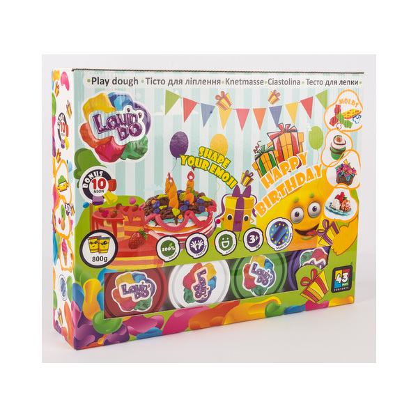 к-т пластелин Честит рожден ден 680 гр 20 цвята с преса форми и инструкция 36х29х7 см с дръжка 43 части на растителна основа