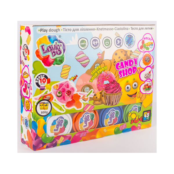 к-т пластелин фабрика за бонбони 800 гр 20 цвята с преса форми и инструкция 36х29х7 см с дръжка 43 части