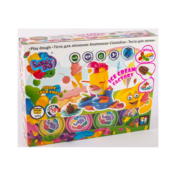 к-т пластелин сладоледена фабрика 800 гр 20 цвята с преса форми и инструкция 36х29х7 см с дръжка 43 части на растителна основа
