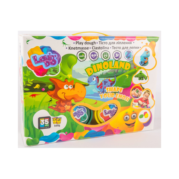 к-т пластелин земята на динозаврите 560 гр 20 цвята с преса форми и инструкция 30х22х7 см с дръжка 35 части