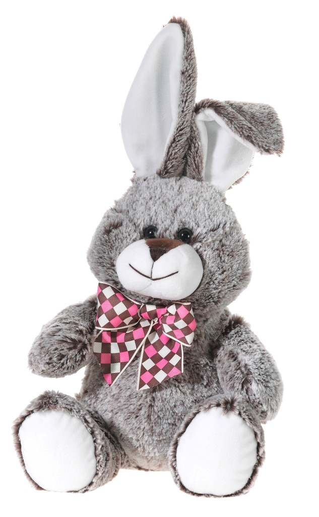 Меко зайче, изработено от двуцветен плюш, което го прави още по-реалистично. Ушичките са твърди и стоят изправени, като положението им може да се променя. Серията включва: кафяво зайче, сиво зайче, бежово зайче. Карираната панделка е съчетана с цвета на зайчето и го прави подходящо и за официални празници. Възраст: 0+ Размер: 30 см. Материал: текстил, с пластмасови очички. Куклите на Heunec, са сертифицирирани и отговарят на стандартите за безопасни играчки EN71 и ASTM.