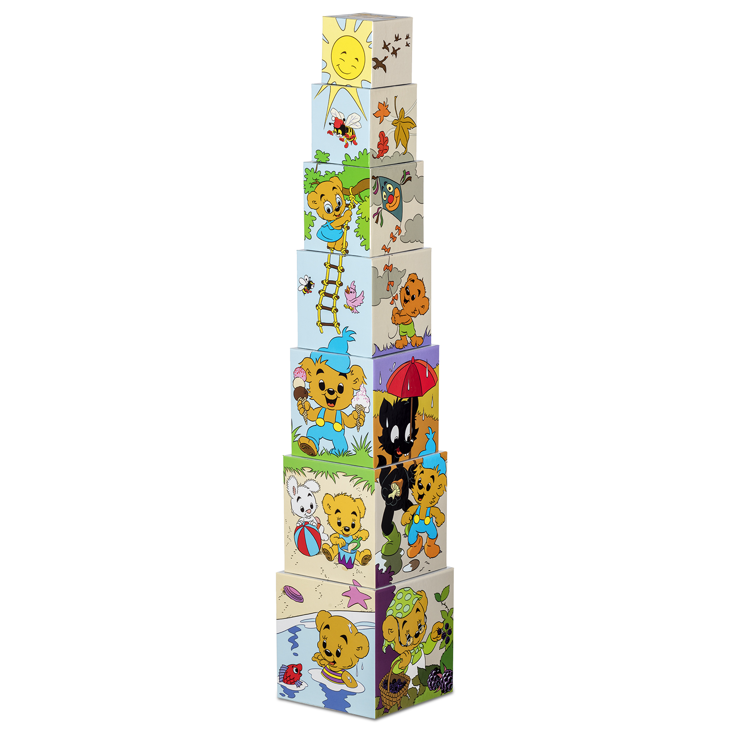 Подредете блоковете! Когато го направите правилно, четирите различни страни показват снимки на всички ваши любими герои от Bamse в нашите четири сезона. Чрез подреждане или поставяне на седемте картонени блока заедно, детето придобива усещане за това как различните размери са свързани един с друг. Голямо, малко и по средата. В горната част на всеки блок има снимки на различни герои на Bamse. Когато блоковете са подредени, кулата е висока 64 см, а когато времето за игра изтече, блоковете могат да се съхраняват един в друг. Препоръчва се от 18 месеца. Материал: твърд картон Размер на кулата от кубчета: 12X12X64 см. Размер на опаковката: 13x13x22 см.