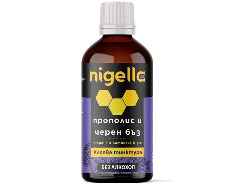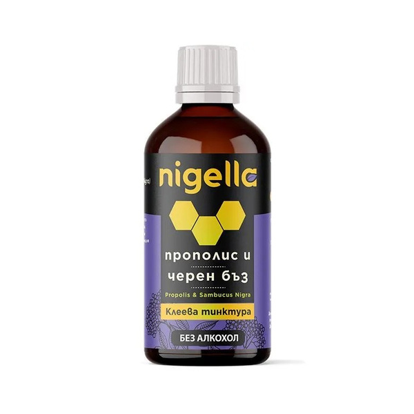 Клеева тинктура с прополис и черен бъз без алкохол Nigella Lidia Pharma е хранителна добавка, която подпомага дейността на храносмилателната, дихателната, сърдечно-съдовата, нервната и пикочо-половата система. Оказва благоприятно въздействие върху имунната система и увеличава съпротивителни сили на организма. Черният бъз оказва благоприятно въздействие и върху ставите. Клеева тинктура с прополис и черен бъз без алкохол Нигела Лидия Фарма се продава в стъклена бутилка от тъмно стъкло, което предпазва качеството на ценната течност от въздействието на UV лъчите.