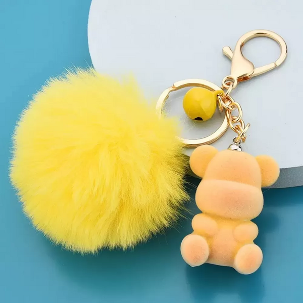 Ключодържател мече с пухче в жълт, бонбонен цвят е красив и закачлив аксесоар, подходящ за госпожици.