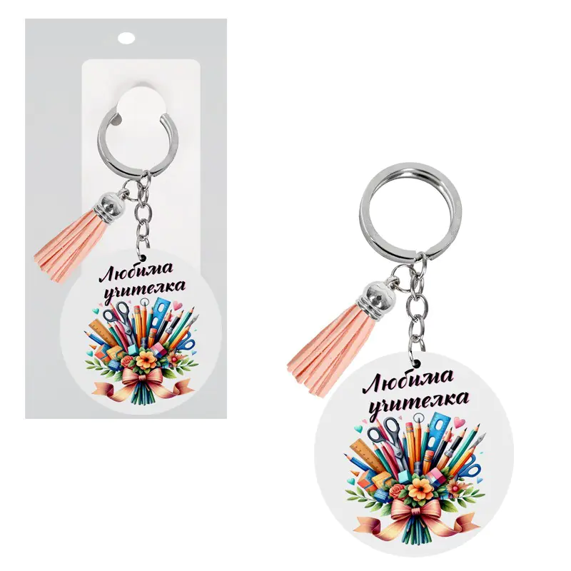 Ключодържател от дърво с кожен тасел - Любима учителка