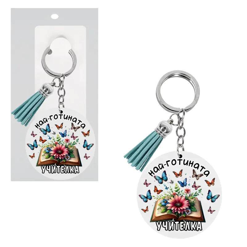 Ключодържател от дърво с кожен тасел - Най-готината учителка