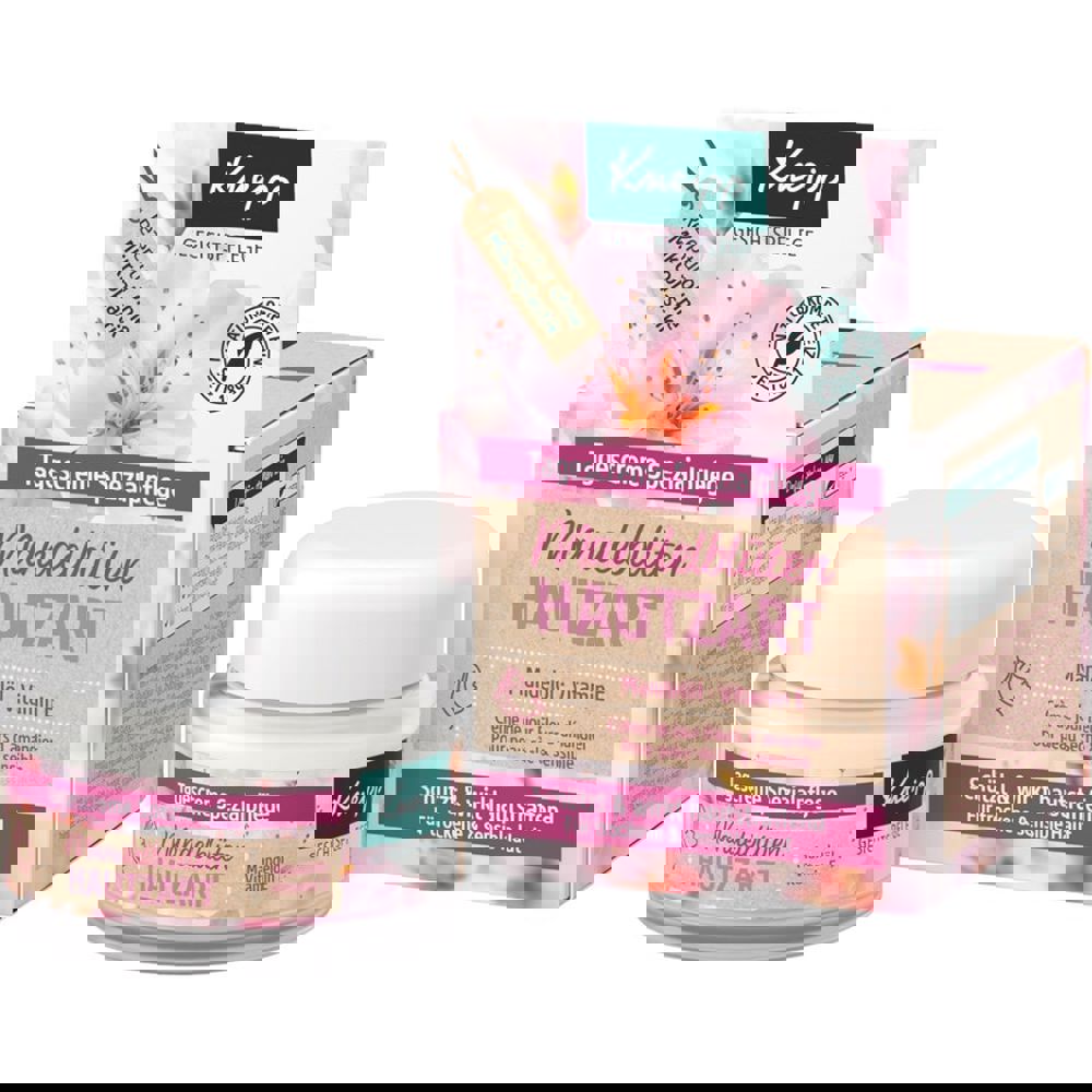 Kneipp Mandelblüten Hautzart Face Cream е специално разработен крем за лице за суха и чувствителна кожа. Формулата е създадена в сътрудничество с дерматолози и осигурява оптимален баланс между масла и влага, за да поддържа кожата успокоена, мека и защитена. Кремът намалява усещането за опъване, предотвратява раздразнения и възстановява естествения хидробаланс. Обогатен е с висококачествено бадемово масло, витамин A и E, шеа масло и пантенол – съставки, които подхранват, омекотяват и успокояват кожата. Благодарение на овлажняващите активни компоненти, кожата става по-гладка, еластична и защитена от признаци на стареене, предизвикани от светлина и външни фактори. Предимства Интензивна хидратация за суха и чувствителна кожа Успокоява усещането за стегнатост и предотвратява раздразнения Обогатен с бадемово масло, витамини A и E, шея масло и пантенол Възстановява естествения баланс на кожата Подобрява еластичността и предпазва от преждевременно стареене Дерматологично тестван Състав Aqua, Prunus Amygdalus Dulcis Oil, Glycerin, Cetearyl Alcohol, Cetearyl Olivate, Tocopheryl Acetate, Sorbitan Olivate, Persea Gratissima Oil, Panthenol, Butyrospermum Parkii Butter, Olea Europaea Fruit Oil, Phytosterols, Prunus Amygdalus Dulcis Flower Extract, Helianthus Annuus Seed Wax, Helianthus Annuus Hybrid Oil, Citrus Aurantium Dulcis Peel Oil, Pogostemon Cablin Leaf Oil, Lavandula Hybrida Oil, Citrus Limon Peel Oil, Limonene, Linalool, Coumarin, Citronellol, Geraniol, Citral, Benzyl Alcohol, p-Anisic Acid, Parfum, Caprylyl Glycol, Arginine, Sorbitan Oleate, Xanthan Gum, Ascorbyl Palmitate, Citric Acid, Glycine Soja Oil, Tocopherol.