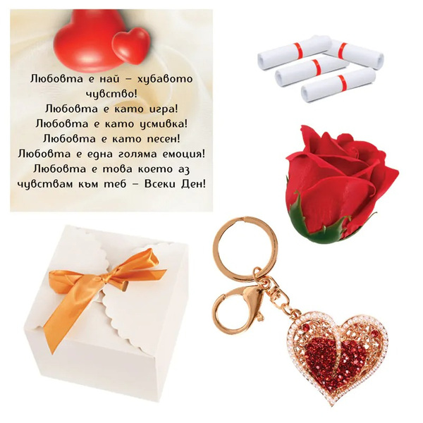 Kомплект - 10 причини да те обичам със сапунена роза и ключодържател сърце