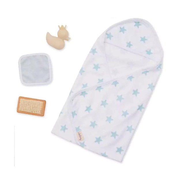 Комплект аксесоари за кукла, Battat, Lulla Baby, Халат за баня, 4 части, Син