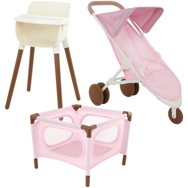 Комплект аксесоари за кукла, Battat, Lulla Baby, Количка, столче за хранене и кошара за игра, 3 части