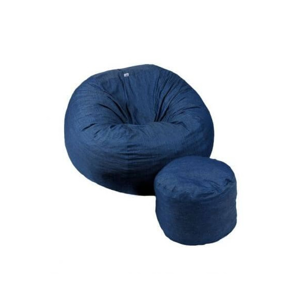 Комплект, Барбарон с табуретка за крака, 500л. Matusalem - Blue Denim, Перящ се калъф, Подходящ за деца, Пълнеж с микс от мемори пяна и дунапрен, Гама Savana