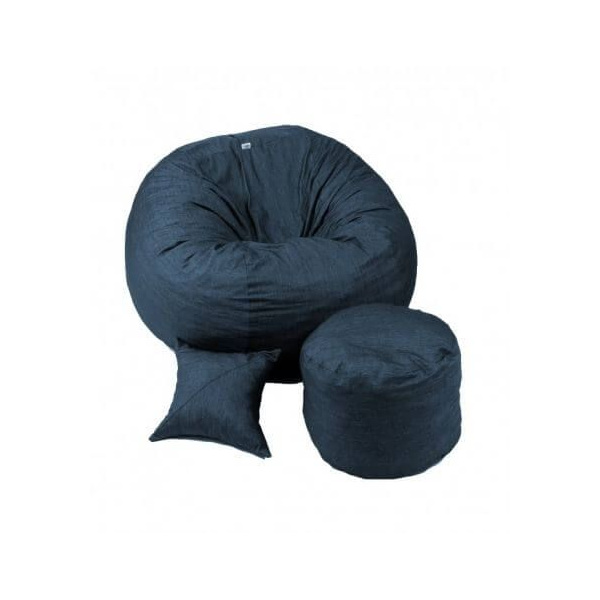 Комплект, Барбарон с табуретка за крака и декоративна възглавница, 500л. Matusalem - Blue Denim, Перящ се калъф, Подходящ за деца, Пълнеж с микс от мемори пяна и дунапрен, Гама Savana