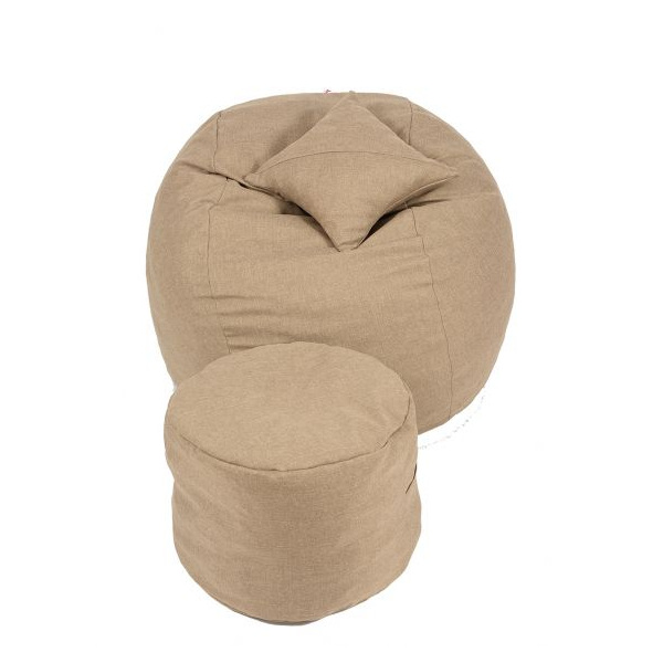 Комплект, Барбарон с табуретка за крака и декоративна възглавница, 500л. Matusalem - Sand, Перящ се калъф, Подходящ за деца, Пълнеж с микс от мемори пяна и дунапрен, Гама Premium