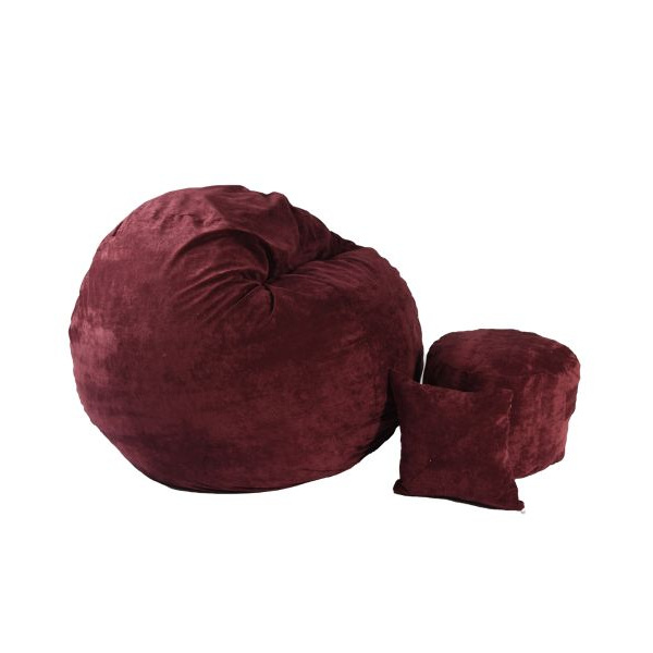 Комплект, Барбарон с табуретка за крака и декоративна възглавница, 500л. Matusalem, Velvet Marsala, Перящ се калъф, Подходящ за деца, Пълнеж с микс от мемори пяна и дунапрен, Гама Premium