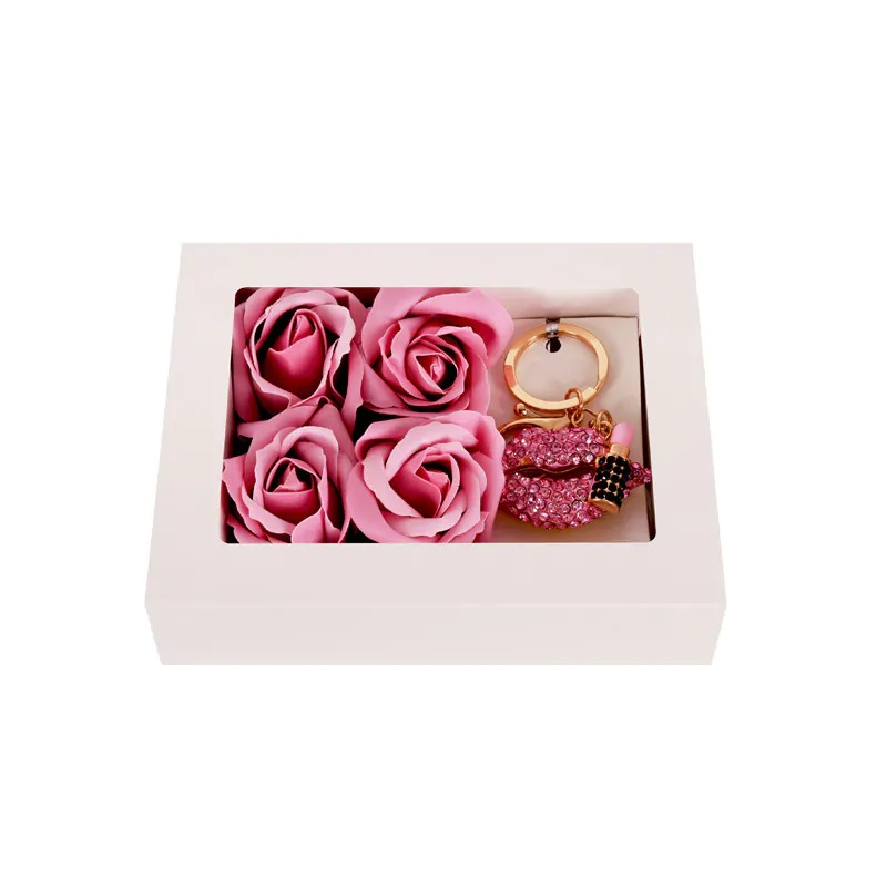 Kомплект с метален ключодържател с камъни и 4 сапунени рози