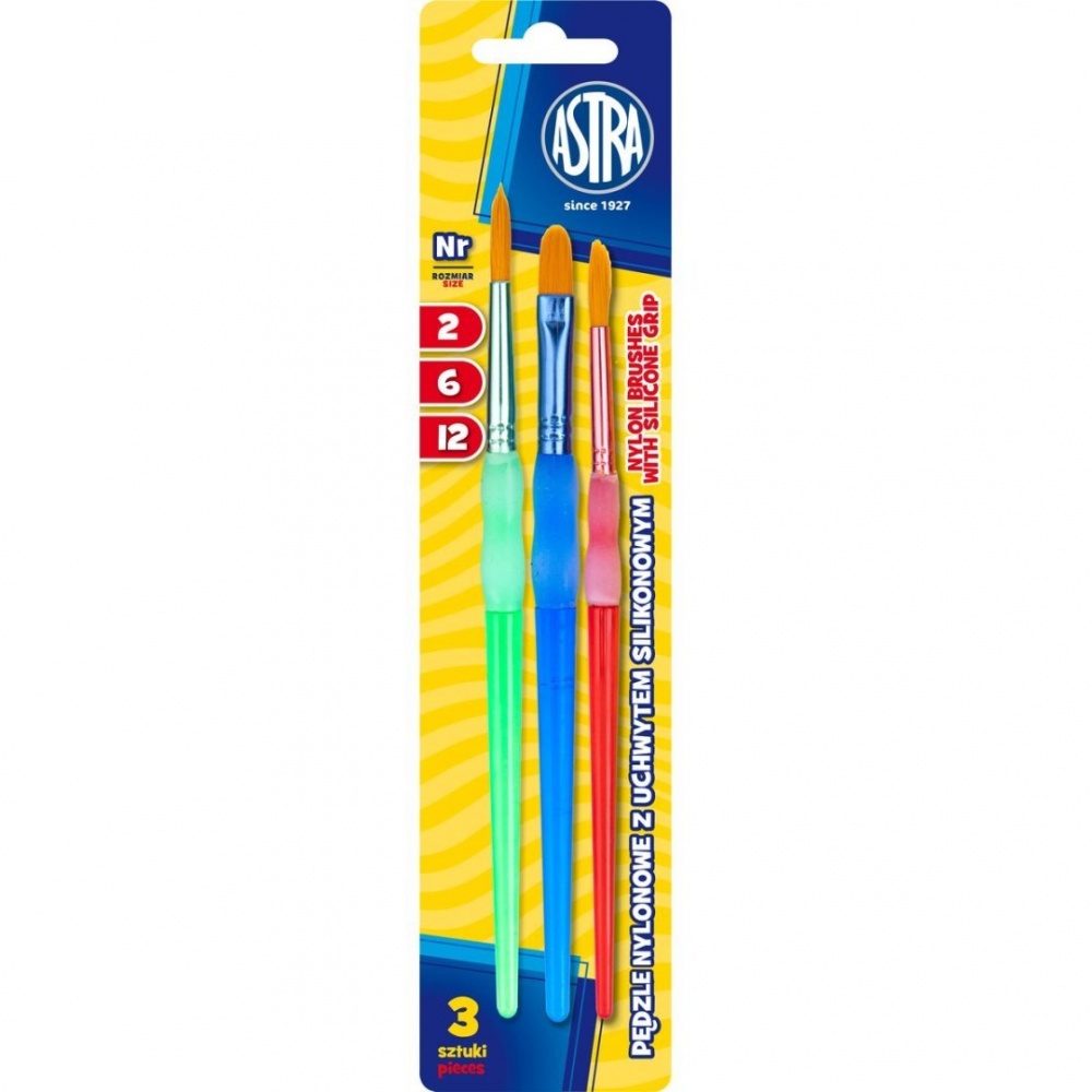 Комплект четки, Astra, Ергономична силиконова дръжка, Блистер 3 бр.