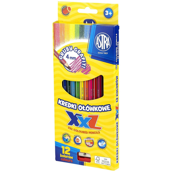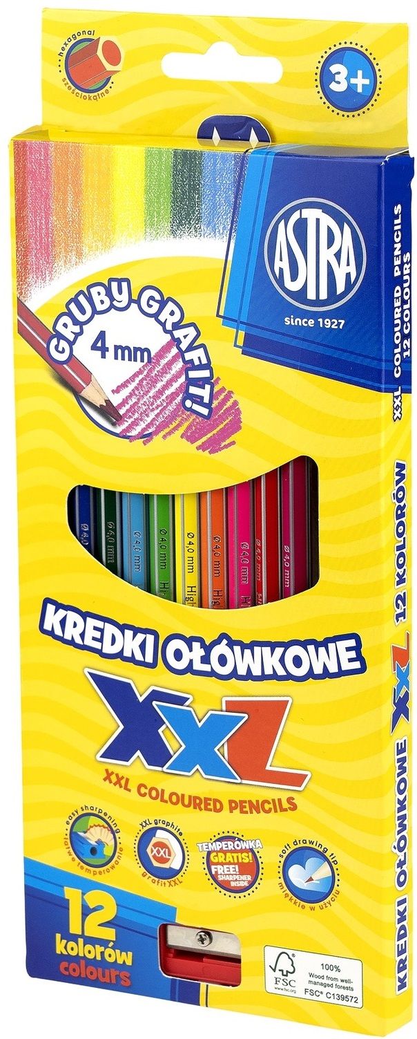 Комплект цветни шестоъгълни моливи, Astra, XXL, 12 броя, С острилка