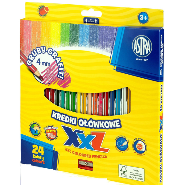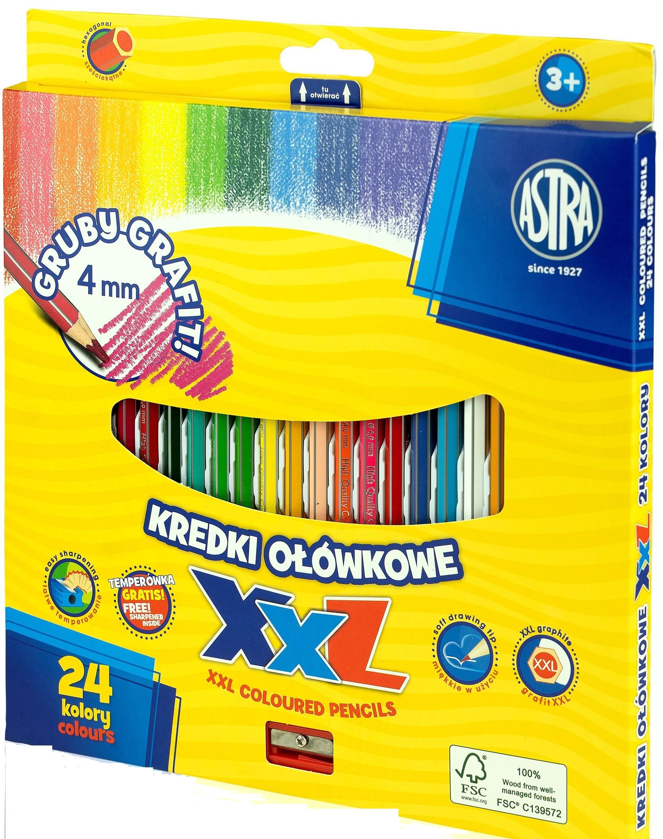 Комплект цветни шестоъгълни моливи, Astra, XXL, 24 броя, С острилка