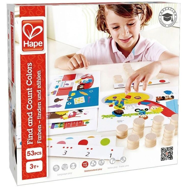 Комплект дървена игра, Hape, Намери, събери и преброй, 53 части