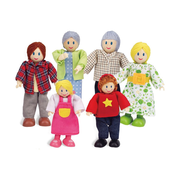 Комплект дървени кукли, Hape, Щастливо семейство, 6 броя