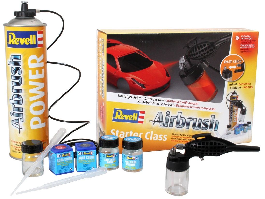 Комплект еднодействащ аерограф, Revell, Starter Class, 10 части