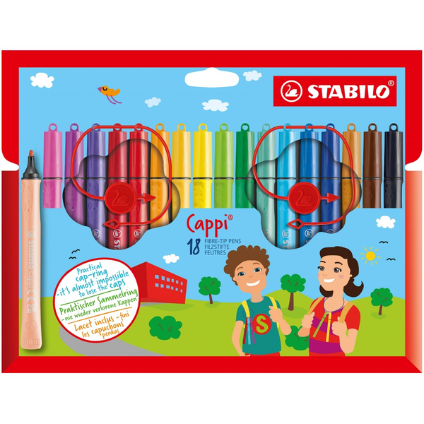 Комплект флумастери, Stabilo, Cappi, 18 цвята
