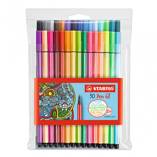 Комплект флумастери, Stabilo, Pen 68 24+6 neon, 30 цвята