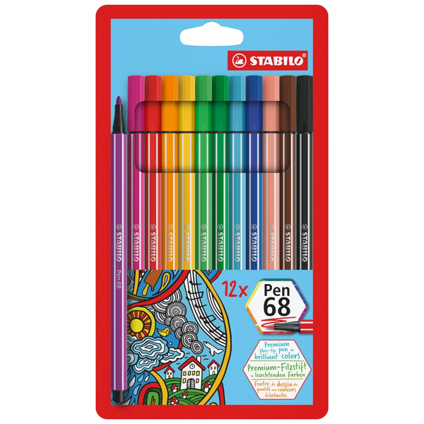 Комплект флумастери, Stabilo, Pen 68, 12 цвята