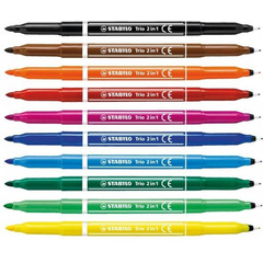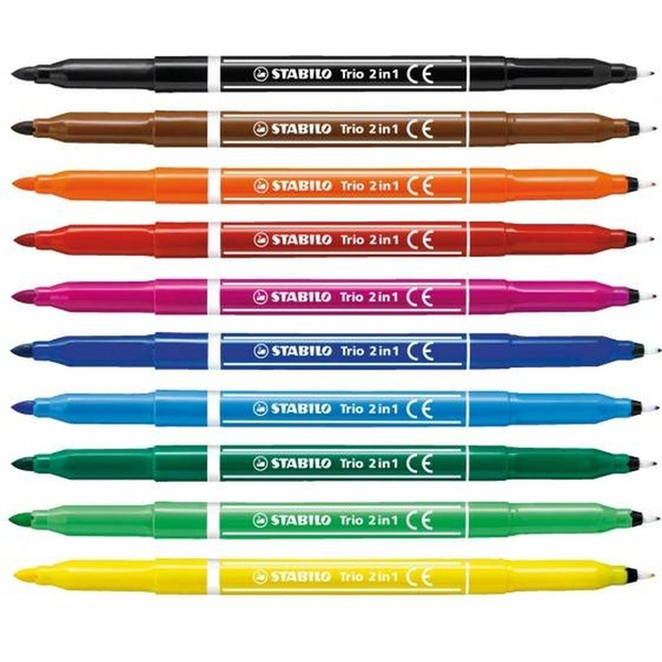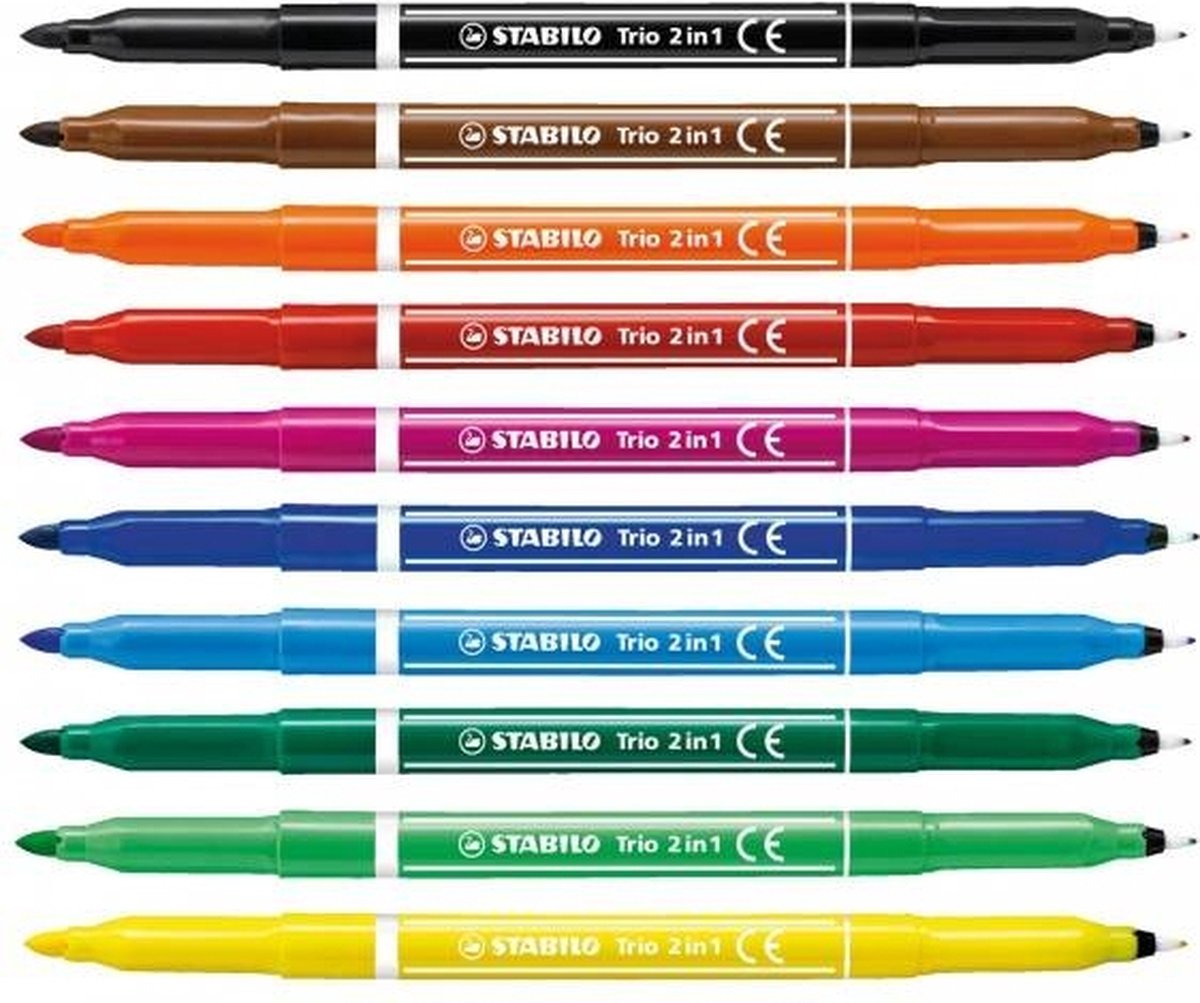 Комплект флумастери, Stabilo, Trio 2 в 1, 10 цвята