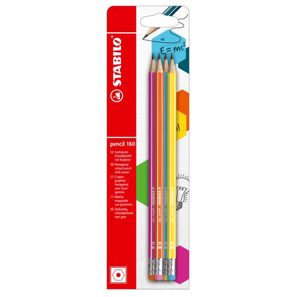 Комплект графитни моливи, Stabilo, 160 RT HB, Блистер 4 бр. черен