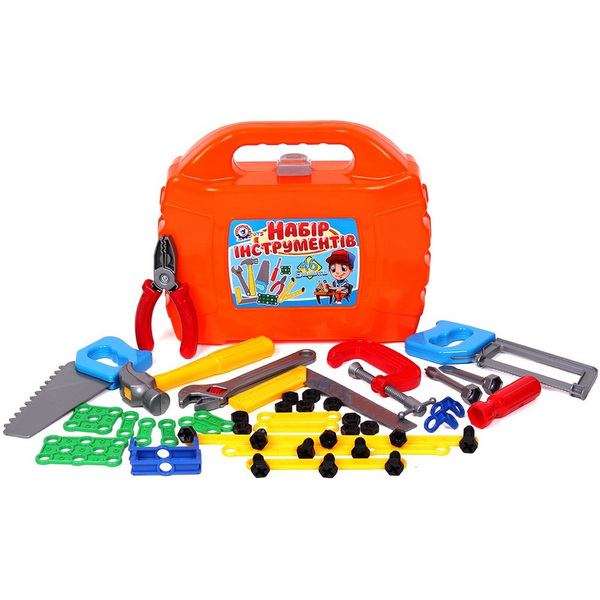 комплект инструменти малкия 27х23х9 с конструктор с пластмасови болтове и гайки