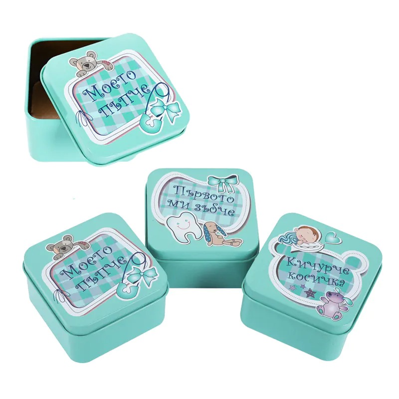 Комплект метални кутийки за бебе момче - пъпче, зъбче и кичурче